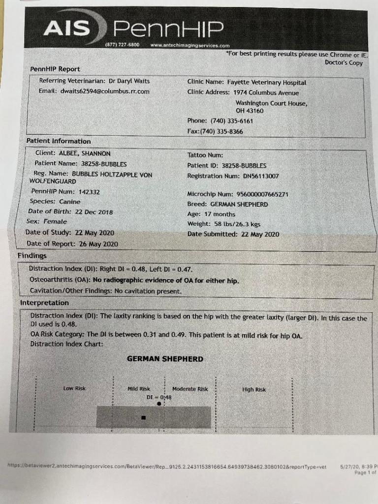 Bubbles Holtzapple von Wolfenguard- DOB 12/22/18 Weight: 65 lbs