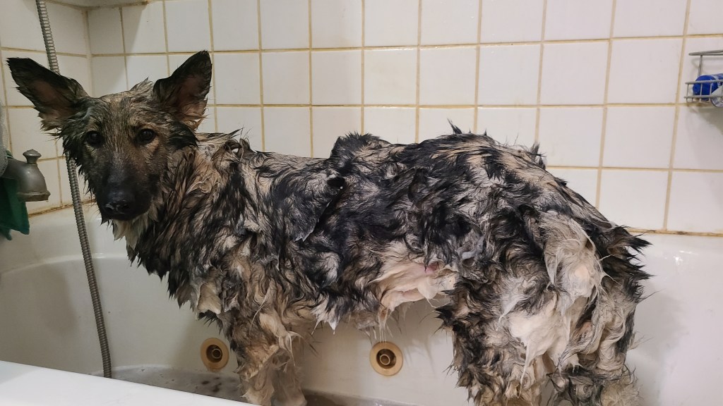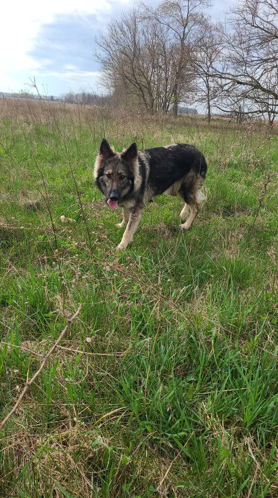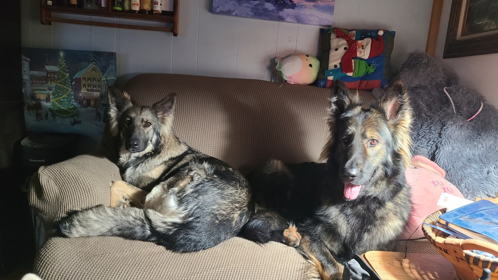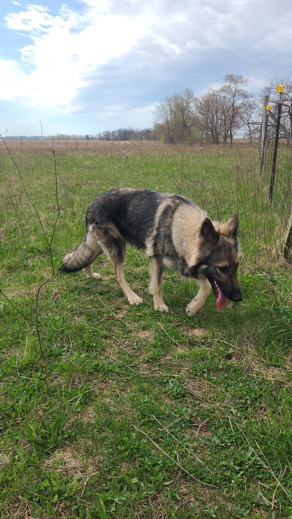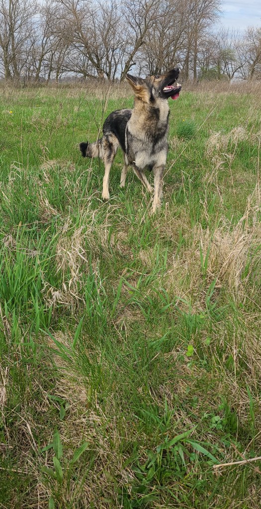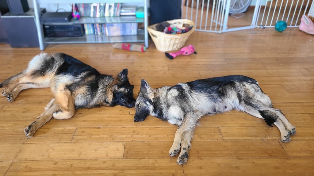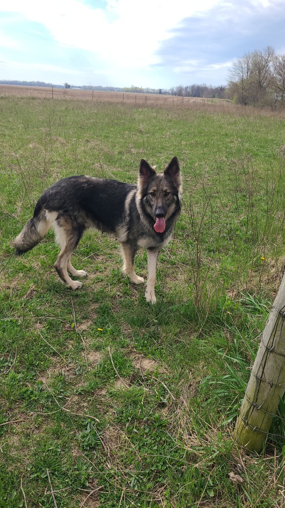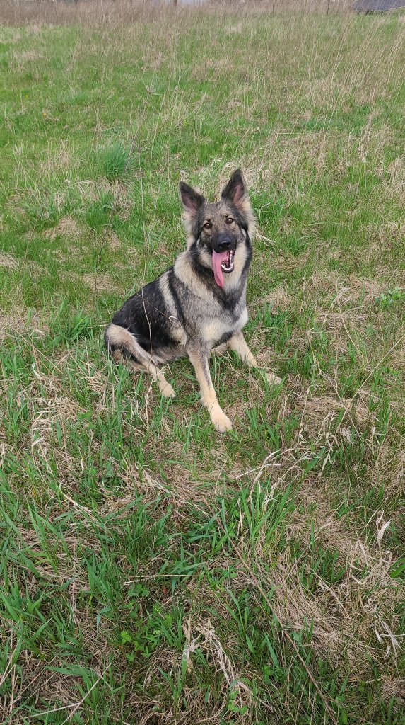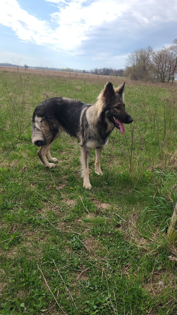 This sweetheart’s name is Journee. She loooooooves to be loved. While, all of my dogs love snuggles and kisses, she is probably the one wanting that the most lol. She is glued to me all the time and only wants to be where I am lol 🙂 She is so gentle and sweet and the best mommy ever! She is calm and very laid back and loves to just lay around. Very low drive and energy. She has SV hips and elbows done and good, and we have a full panel Canine Health Check (thru Paw Prints Genetics) done, she is clear of Dm, Dwarfism, and every single thing tested for. She carries liver and blue!