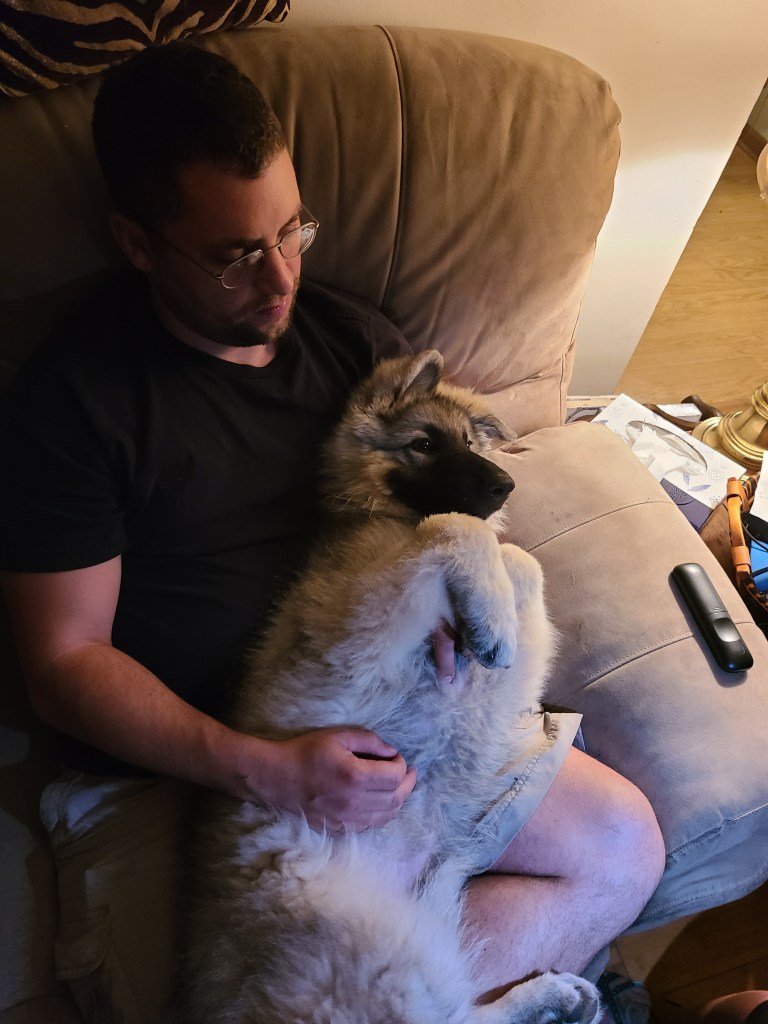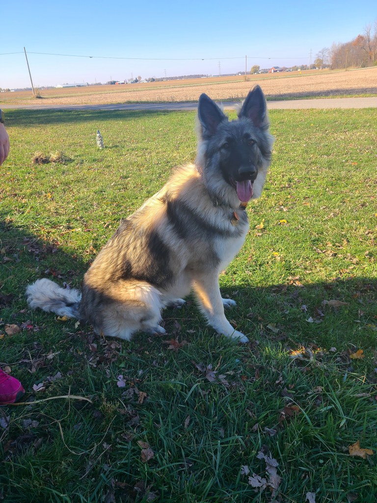 My silver sable from Greystone German shepherds. He is in a guardian home in Perrysburg, Oh. He’s medium energy, super loveable, and about 100 pounds lol. He’s got an awesome personality, and is a bundle of snuggly joy! He turns heads wherever he goes and loves attention. He carries blue, liver, and white. He has Pennhip xrays EXCELLENT and OFA elbows prelim passing. He also has passing OFA Patella, heart, and dentition. He is a DM carrier and PD carrier.