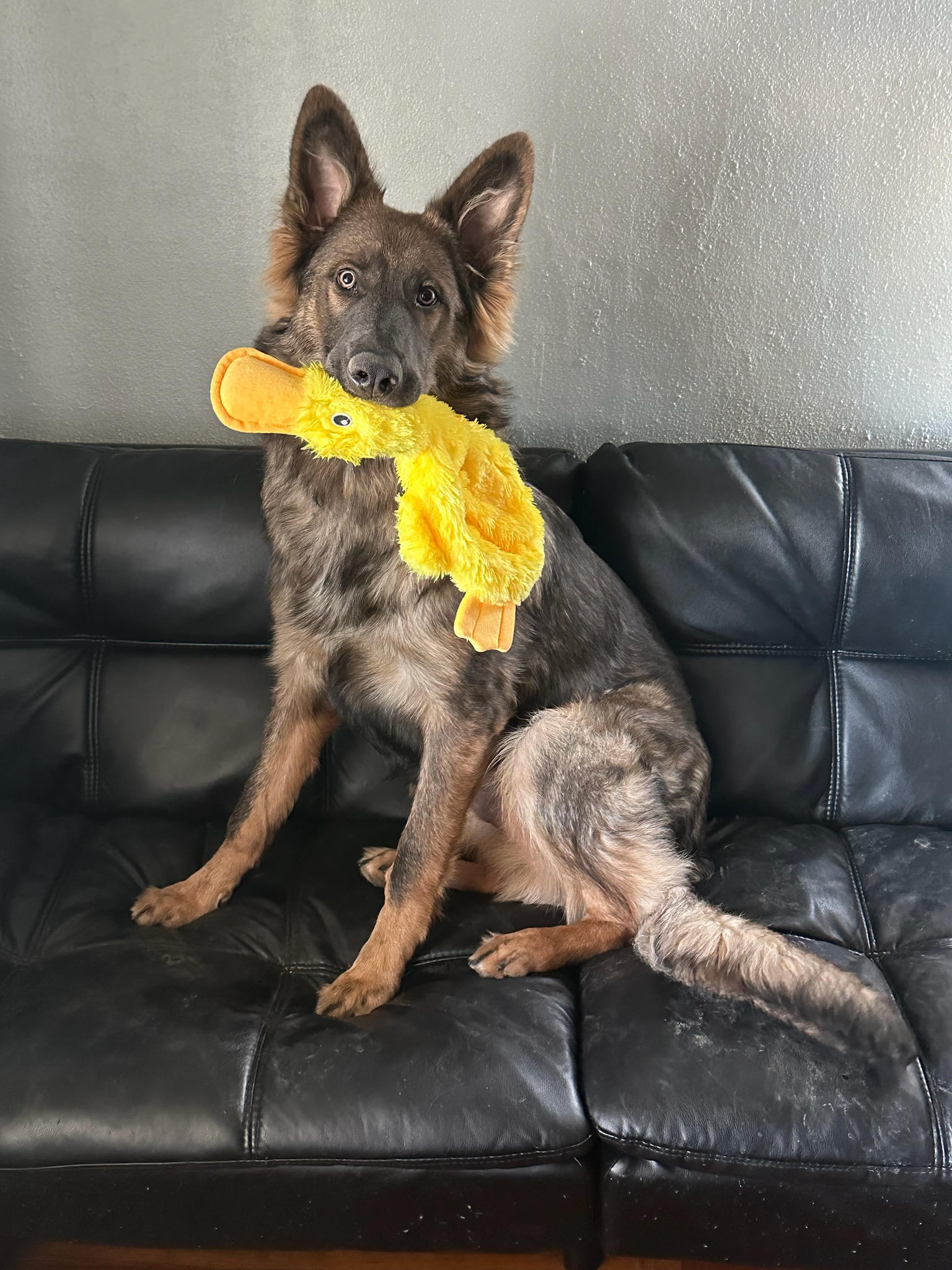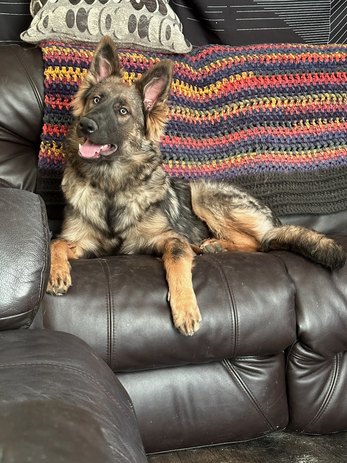 Neuma is another keeper from the Django x Zelda litter. I seem to keep one from every litter haha. He is a long coat blue sable male, he does not carry liver, but thats okay! He is in a guardian home nearby. DOB: 7/29/2023. He has a great energy, although a little high for my liking lol, and a great temperament. Stable and friendly, super sweet lovebug. He has passed Pennhip with a high score, which ill post when I find my paper LOL, and OFA hips and elbows good!.