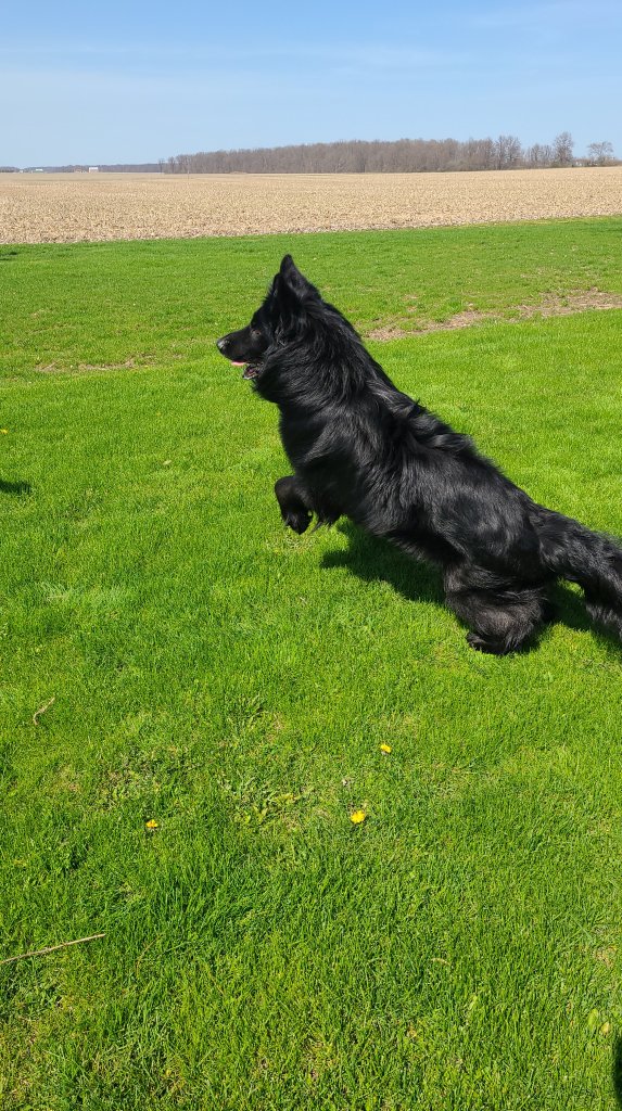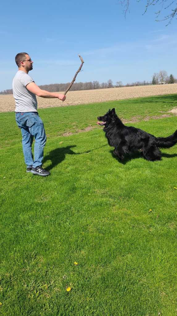 Zeke (short for Ezekiel) is a long hair black male that came to us all the way from Poland. DOB: 3/26/2017. His pedigree name is Norbi Mavic Poland. He is the baby of the family and is one of the sweetest most loving dogs i have ever had the pleasure of owning. His personality is amazing and his temperament is to die for. I could not have been more blessed to find him. Everyone who meets him falls in love. He has his CGC title. I was going to get him into agility, but when we tried in class, he just had no interest in those hurdles, it was hilarious. He has a high ball and prey drive, and an excellent off switch in the house, hes super chill. He’s the perfect family dog and perfect for our program!! He is a DM carrier, PD clear, Pennhip .48 and OFA elbows good. He also had his OFA dentition, heart, and patella done, I just haven’t sent them in to “certify them” even tho the vet already did certify them and all OFA does is stamp it and send a certificate…and I’m not gonna send them in cuz I think its dumb to do. Zeke was retired in 2024 and will remain in our home forever.